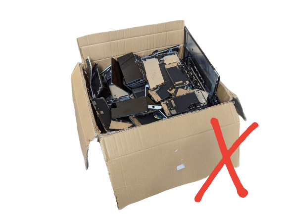 Because the front glass on the screens is already cracked, it's generally considered that it doesn't matter how they're packed. This is not the case; it is critical that you properly pack your screens, both while saving them and when delivering them to us.